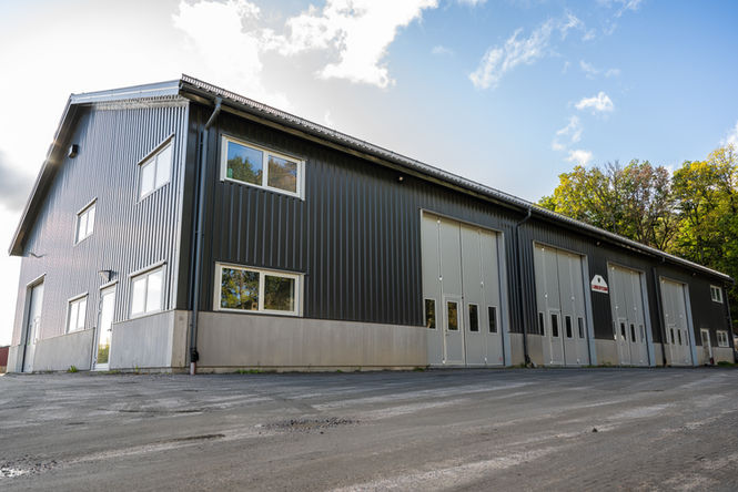 Isolerad industribyggnad, med entresolplan och tvätthall.